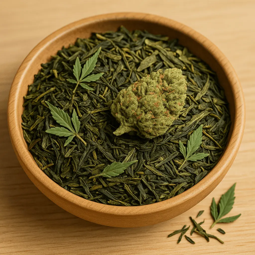 Plongez dans une expérience sensorielle avec notre Thé Vert Sencha au chanvre, à l’orange et au gingembre.